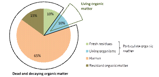 (breakdown) of both plant residues and active soil organic matter or detritus. Organic compounds in vegetal detritus includes